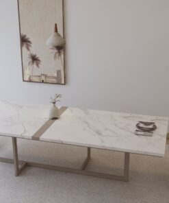 كونسول مموج بتأثير معدني وسطح رخام أبيض