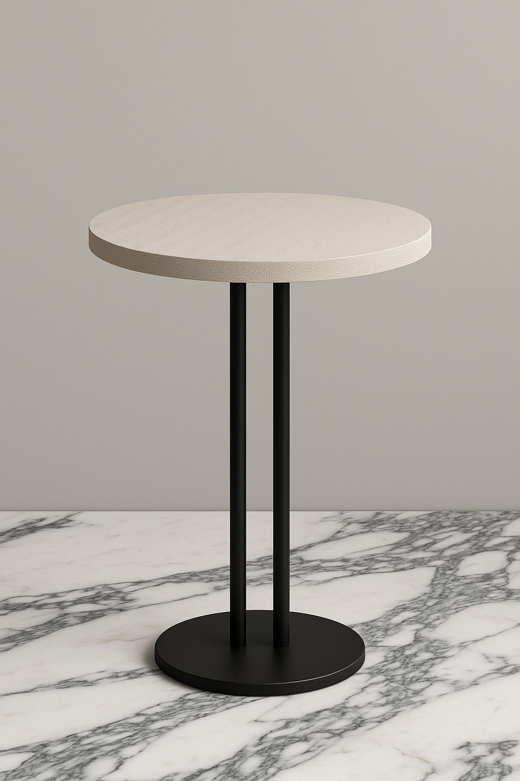 طاولة جانبية فاخرة – سطح من قماش هيرنجبون وقاعدة معدنية مزدوجة